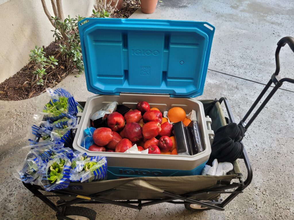Too Much Food To Carry? Use a Cooler And A Cart To Deliver!