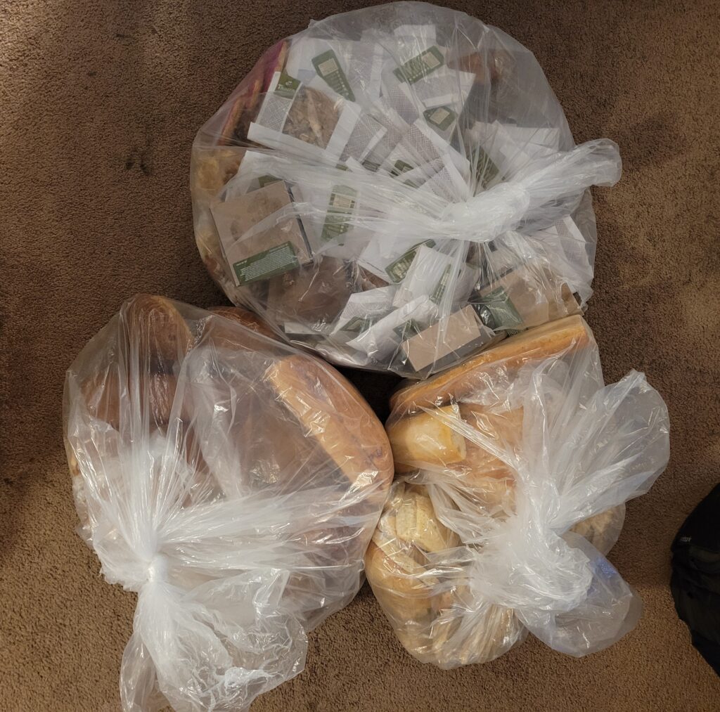 I delivered the food to one of several agencies (Homeless Organizations, Women’s Shelters, etc.)